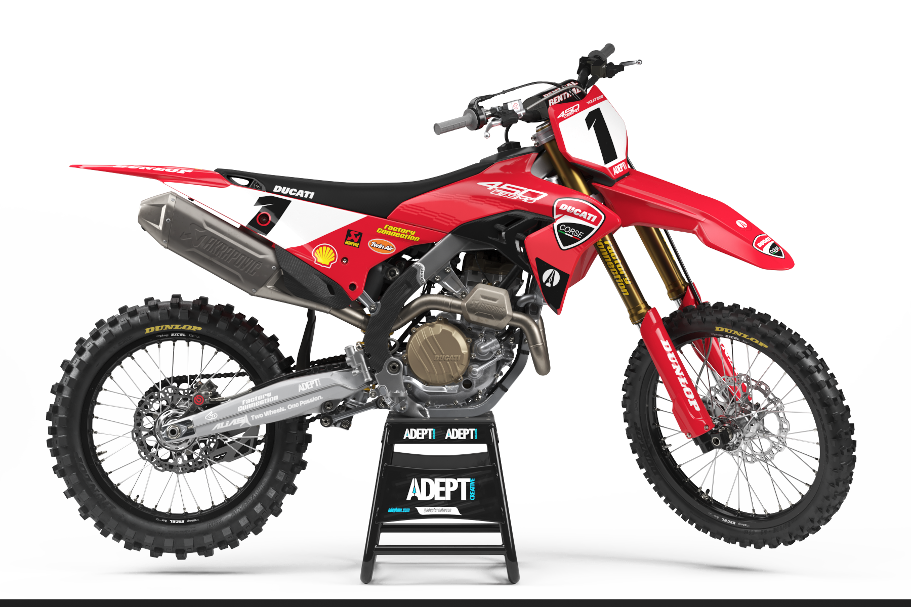 DUCATI GRAPHICS. All of our graphics are printed revolutionary print film with FLO Technology, allowing for bubble-free application of graphics to motocross bikes, ATVs, karts, and other extreme applications.